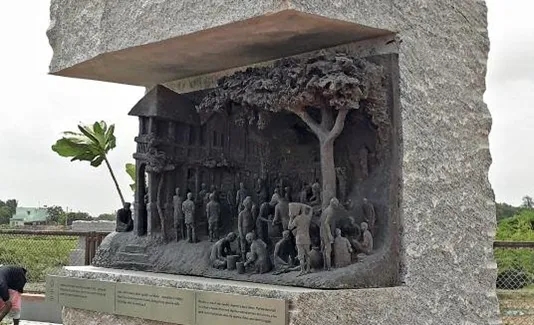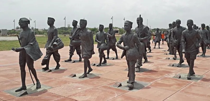 2019年,为了纪念丹迪游行,占地 6 公顷的国家盐业萨蒂亚格拉哈纪念公园在这个偏远的海滨小镇落成。公园的核心建筑是一个重达 2.5 吨的玻璃立方体,被不锈钢 "手臂 "支撑的一双“手”捧着。在这个高耸的纪念碑下方,有一座 5 米高的甘地雕像。玻璃立方体代表盐晶体,夜晚,它和不锈钢 "手臂 "在精心布置的激光照射下,发出色彩变幻的光芒。