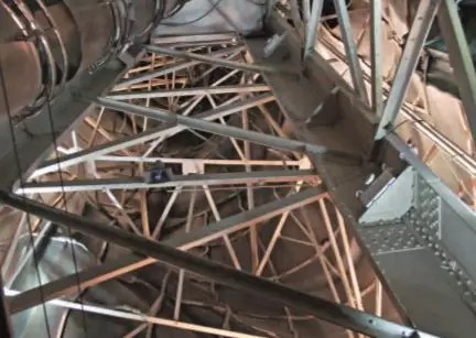 二级框架也出现了严重的损坏。修复团队将大部分受损的框架更换成新的、采用高耐腐蚀性的含钼双相不锈钢(UNS S32550)制成的高强度二级框架。新的框架连接到中央塔架并支撑316L不锈钢支架。剩下的原始二级框架经清洁并涂上锌底漆和环氧树脂面漆,这些涂层保护其免受腐蚀,并将铁与不锈钢隔开,防止相互接触。圆形楼梯踏板、紧急电梯部件以及重新设计的底座楼梯也都更换为316不锈钢材料。